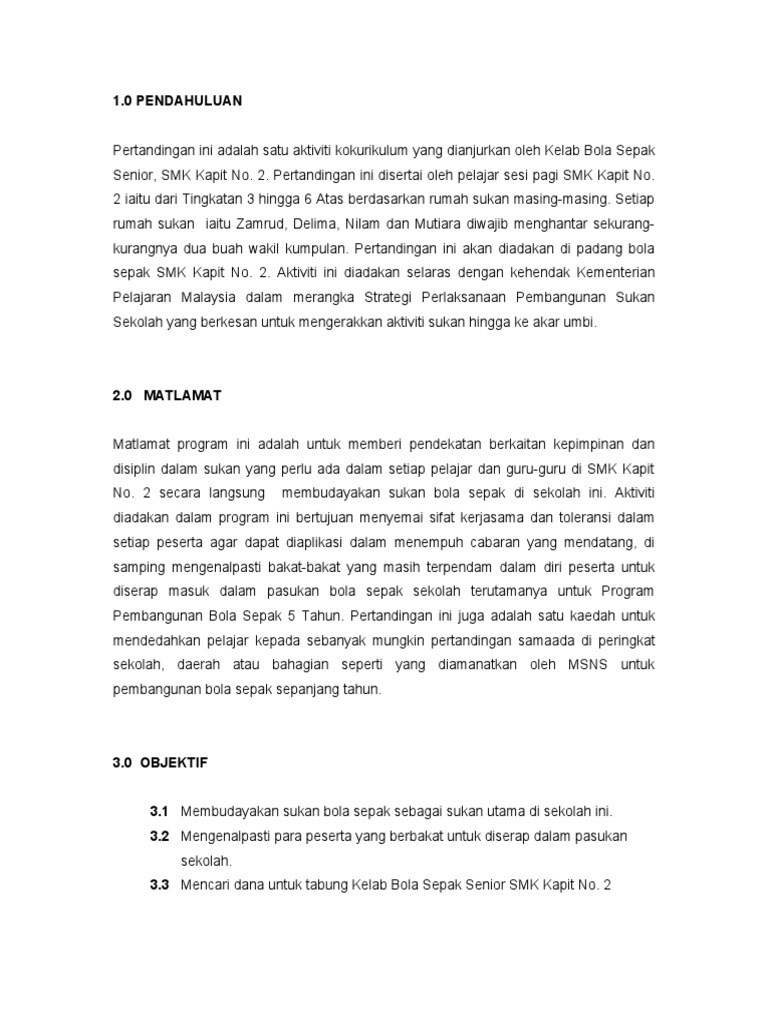 Sekolah kebangsaan rompin program. En wan drahman b wan elias ajk kelab bola sepak. Kertas kerja pertandingan sepak takraw 2014 1.