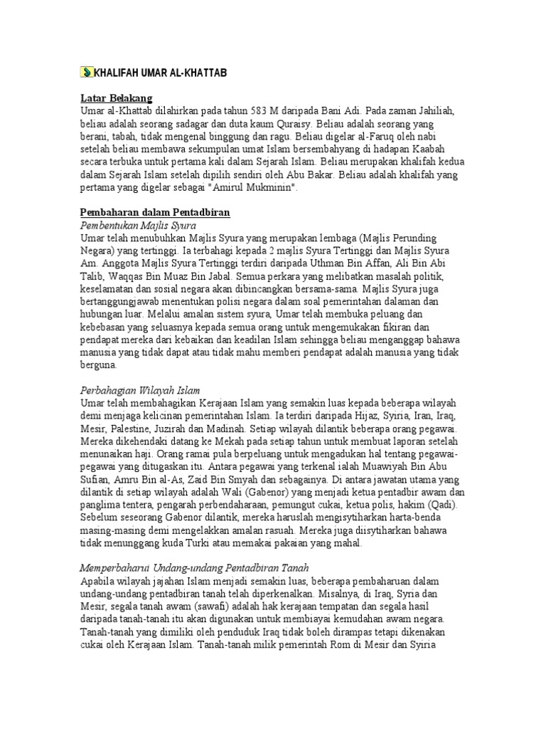 Pembaharuan Yang Berlaku Di Zaman Khalifah Umar Al Khattab