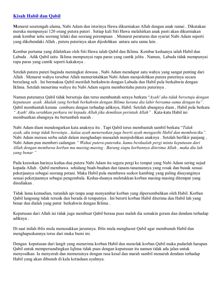 Doc Kisah Habil Dan Qabil Putera Nabi Adam Gavrila Eka Hestiana Academia Edu