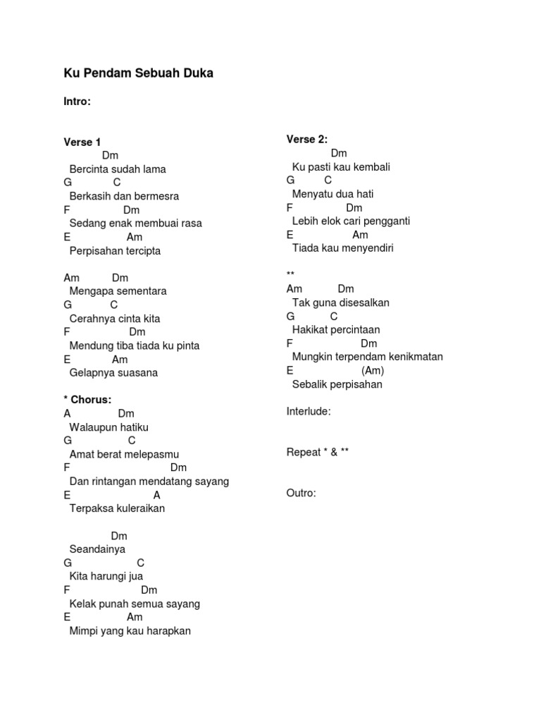 Ku Pendam Sebuah Duka Instrumental Chords Chordify