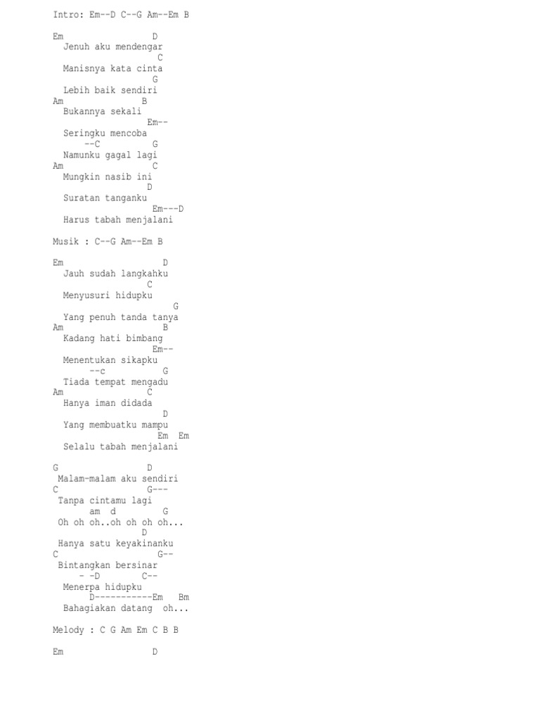 May sendiri chord malay gitar kord tab chords easy chord lyrics. Berikut adalah kunci gitar tak ingin sendiri yang mudah dimainkan.
