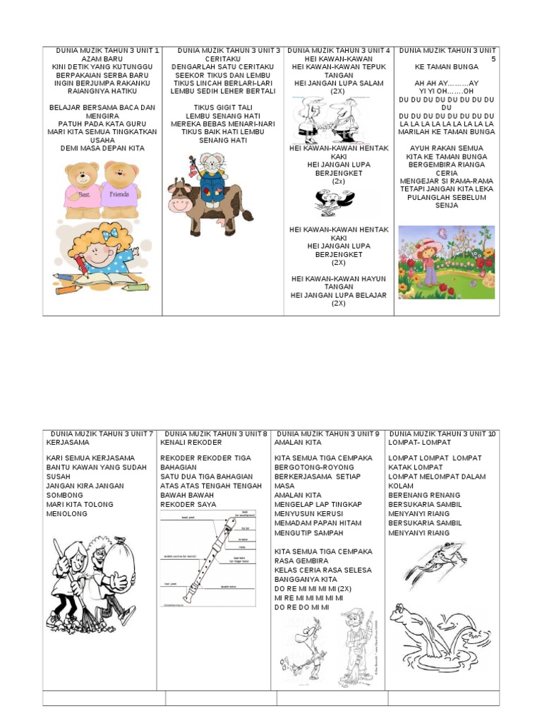 2 kssr dunia muzik tahun 3 azam baru hei kawan kawan kini detik yang ku tunggu 1 hei kawan kawan tepuk tangan berpakaian serba baru hei jangan lupa bersalam ah ah ay ay ingin berjumpa rakanku hei kawan kawan tepuk tangan yi yi oh oh riangnya hatiku hei jangan lupa bersalam du du du du du du du du du belajar bersama baca dan mengira ke taman bunga 2 hei kawan kawan hentak kaki du. Tingkat kolesterol dan indikator risiko terkena penyakit kardiovaskular bukan cuma tinggi. Namun demikian lagu lagu tersebut tidak diletakkan tajuk tajuknya tetapi hanya terdapat no.