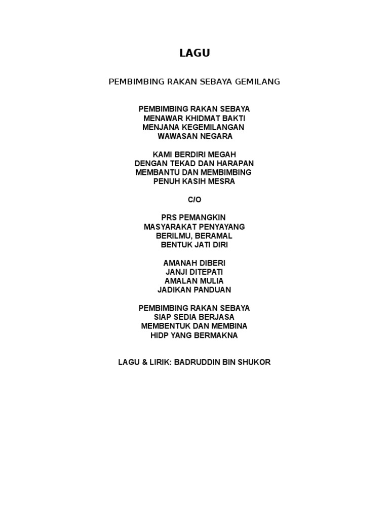 Lirik Lagu Pembimbing Rakan Sebaya Prs Youtube