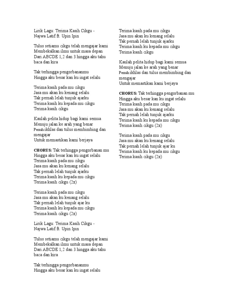 Lirik Terima Kasih Cikgu Lagu Kami Guru Malaysia Docx