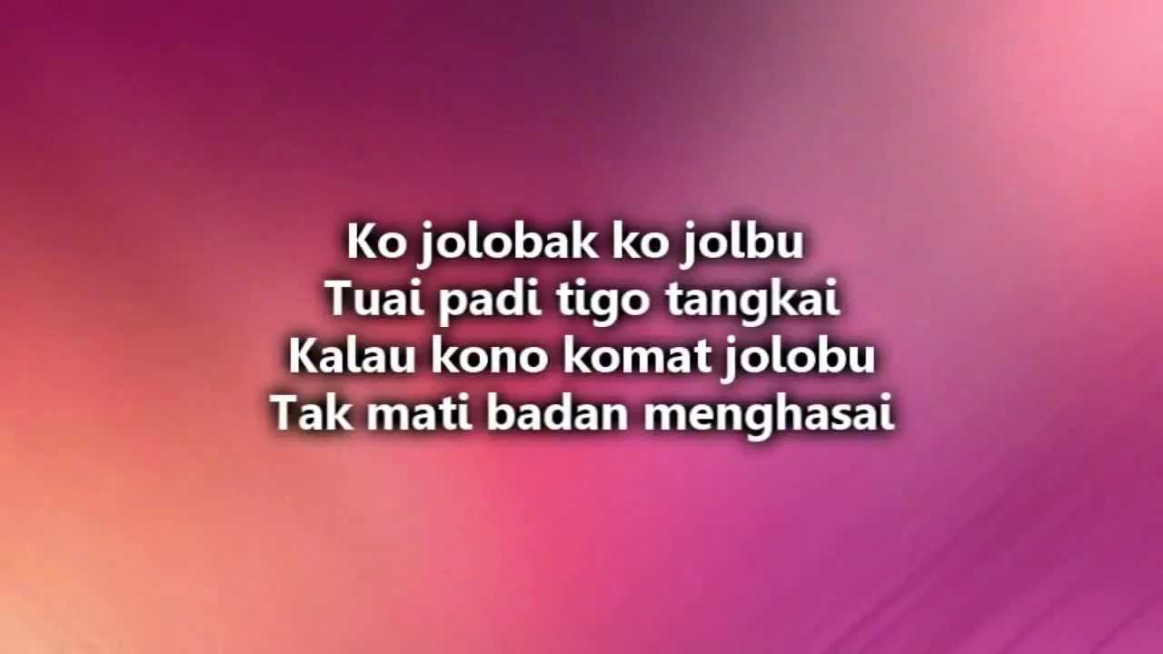 Lirik lagu gadis jolobu waris ft hattan dato hattan ko jolobak ko jolbu tuai padi tigo tangkai kalau kono komat jolobu tak mati badan menghasai gurindam dulu dulu jangan ponah dipotikai tak tahu tanyo dulu jangan goma memandai mandai waris kisah eh bermulo mulut ughang kampong kisah ramai gadis cantik kek jolobu berkampung.
