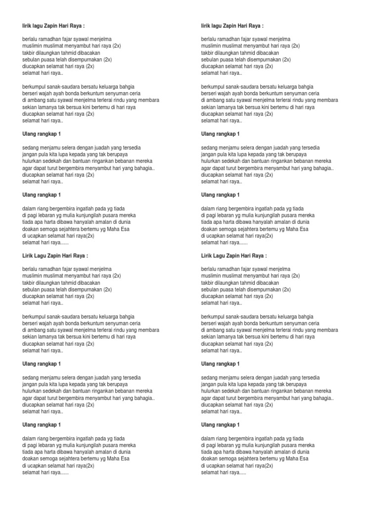 Lirik Lagu Selamat Hari Raya Lirik Lagu Selamat Hari Raya Lirik Lagu Selamat Hari Raya