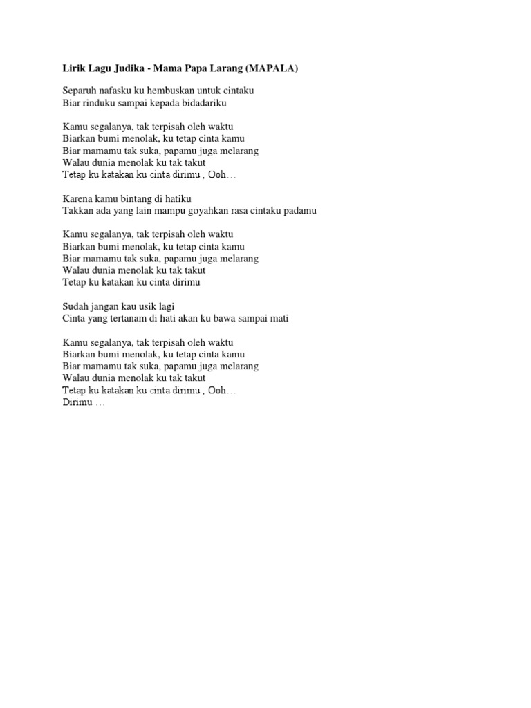 Lirik Lagu Mama Papa Larang Mapala Judika Lirik Hostze Lirik Lagu Lengkap