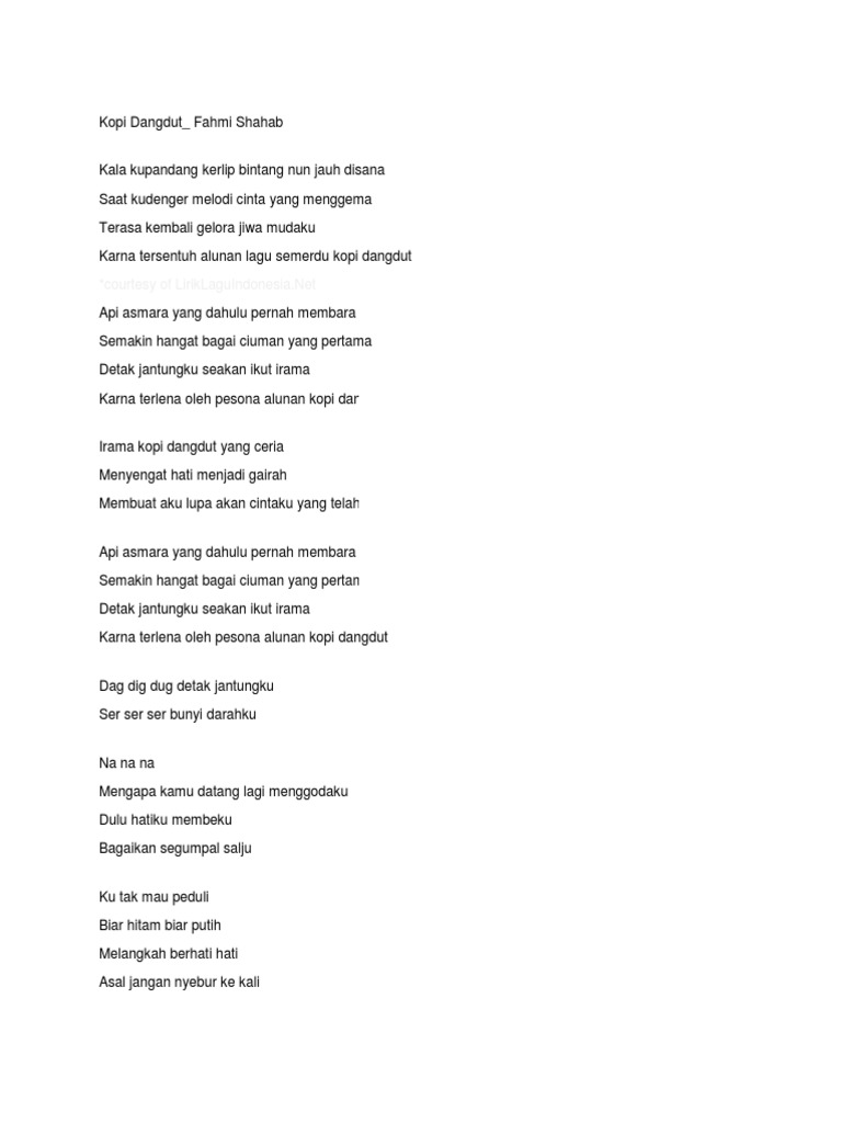 Lyric Chord Kopi Dangdut Indonesia Song Pdf Google Drive
