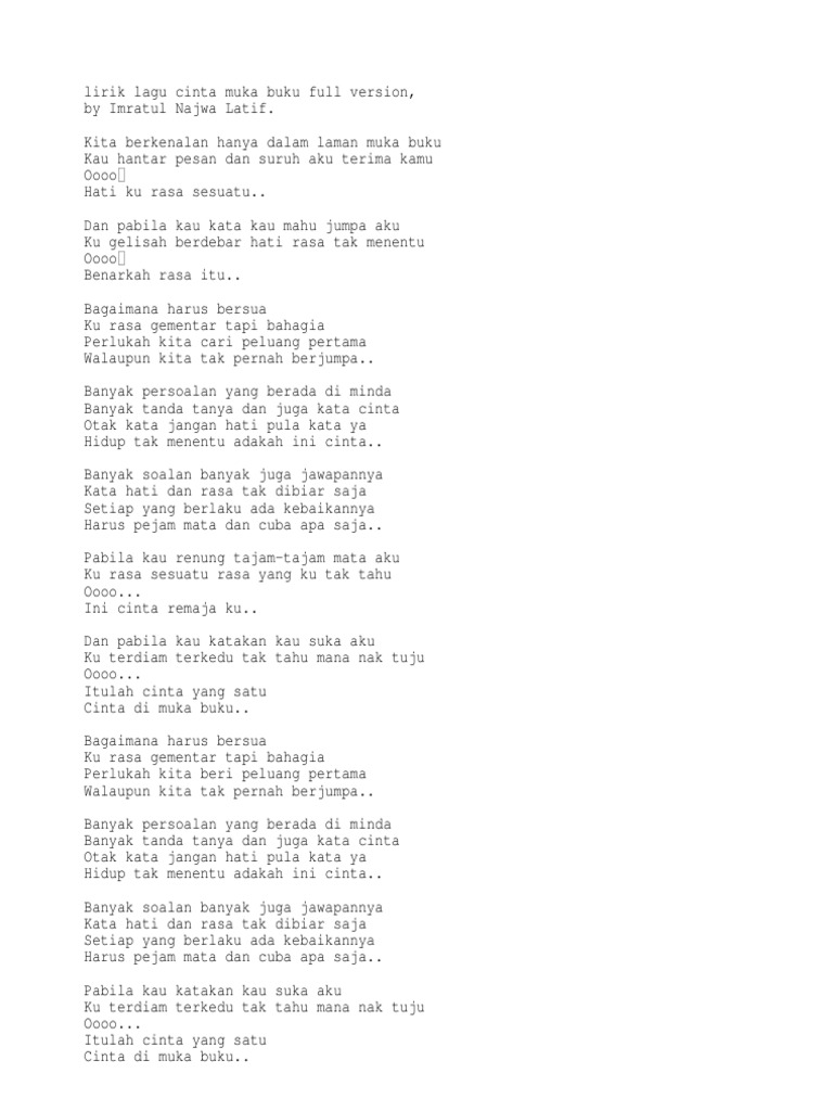 Lirik Lagu Kita Lirik Lagu Cinta Muka Buku Facebook Love Najwa Latif