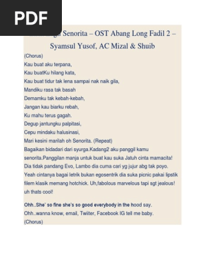 Lirik Lagu Ost Abang Long Fadil 2 Senorita Syamsul Yusof Dato Ac Mizal Feat Shuib Sayidahnapisahdotcom