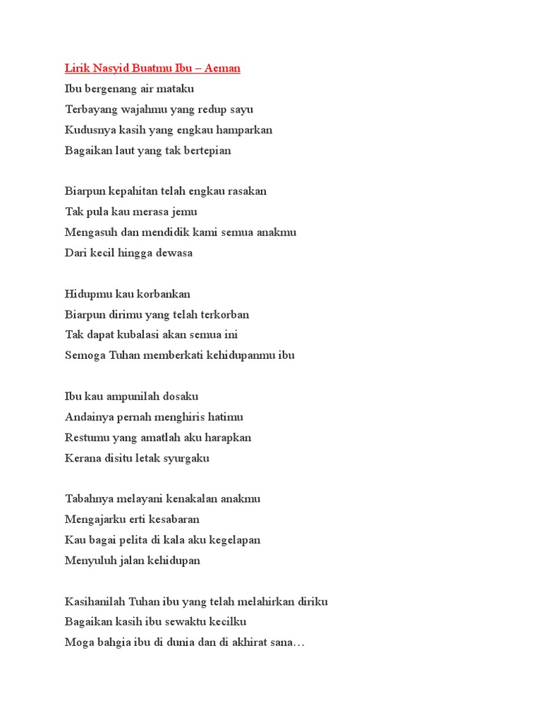 Lirik Nasyid Buatmu Ibu Download Pdf