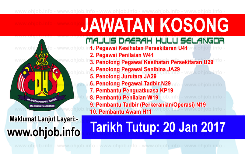 Ohjob Jawatan Kosong Kerajaan Jawatan Kosong Majlis Daerah Hulu Selangor Mdhs 20 Januari 2017
