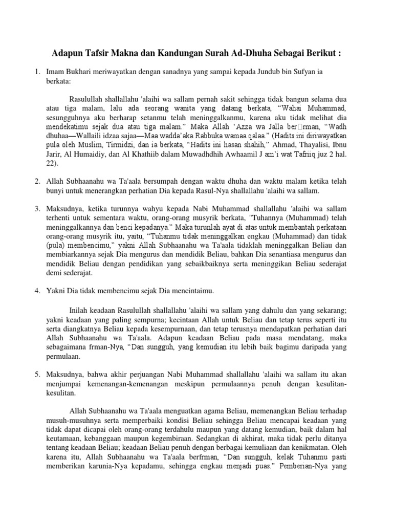 Penjelasan Singkat Dan Tafsir Surat Ad Dhuha