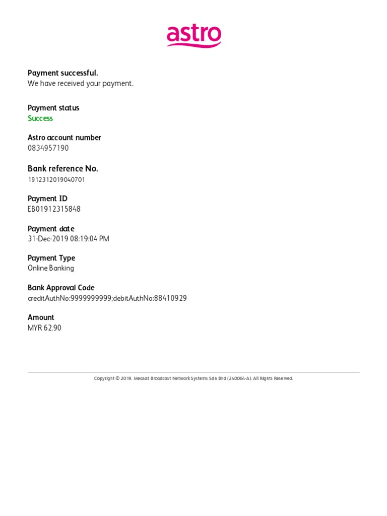 Payment Successful We Have Received Your Payment